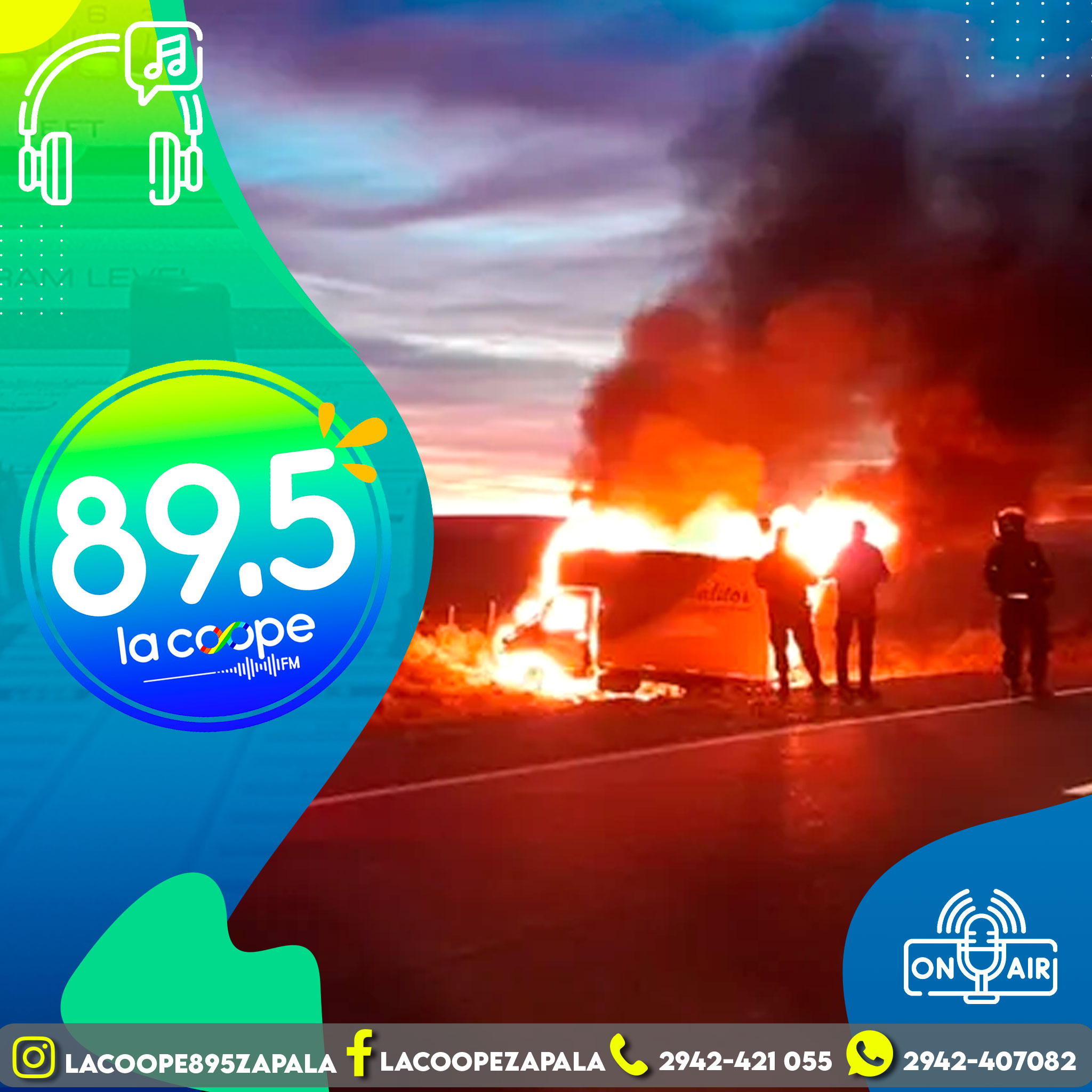 En tanto, Bomberos Voluntarios de Cutral Co confirmaron que a las 8.08 recibieron un llamado que alertaba del incendio en el kilómetro 1341. El sitio se ubica a 20 km de Cutral Co y a 55 km de Zapala.