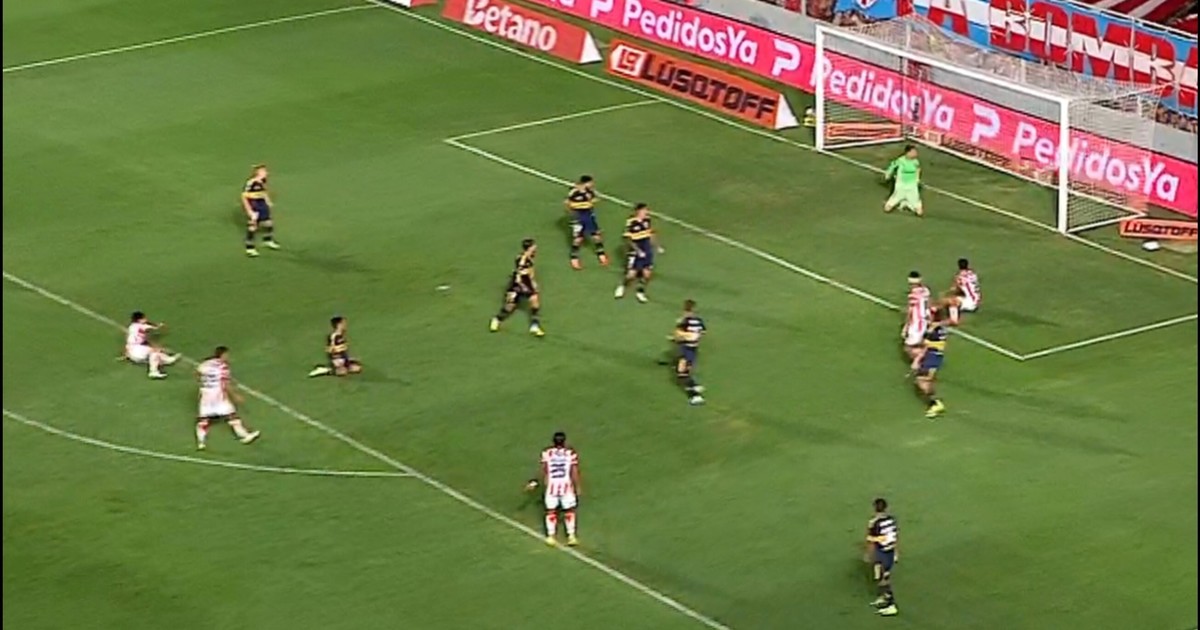 El arquero de Boca quedó clavado sin ninguna reacción tras el remate de Julián Palacios y volvió a quedar en la mira....